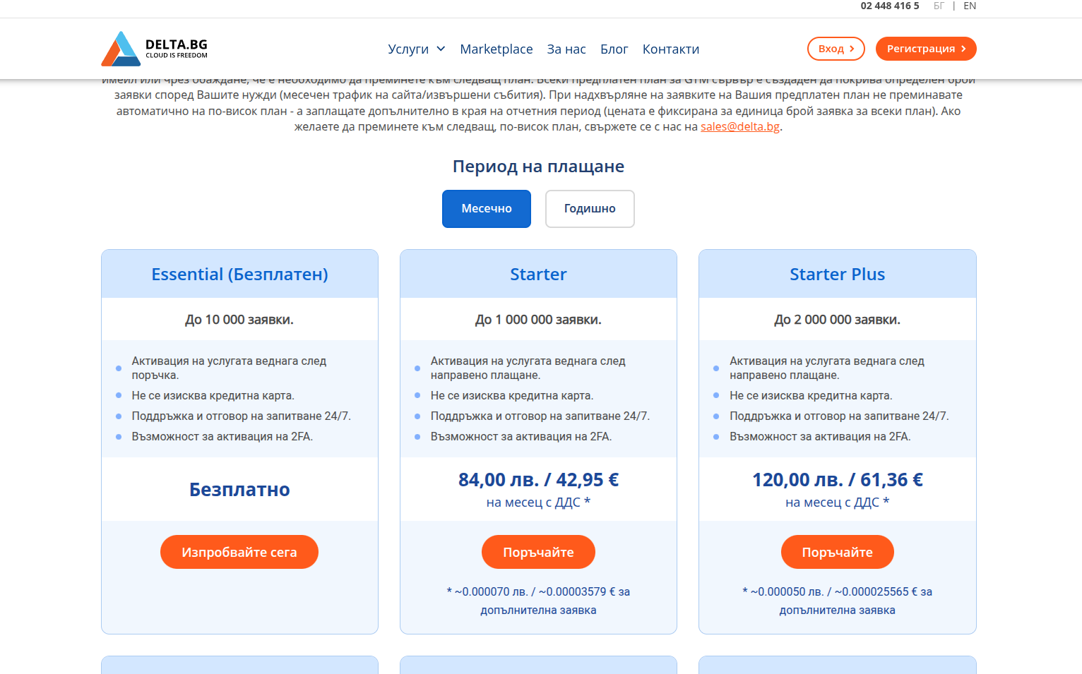 After selecting a plan that meets your needs, you can order from the Delta.BG website or directly from the client area.