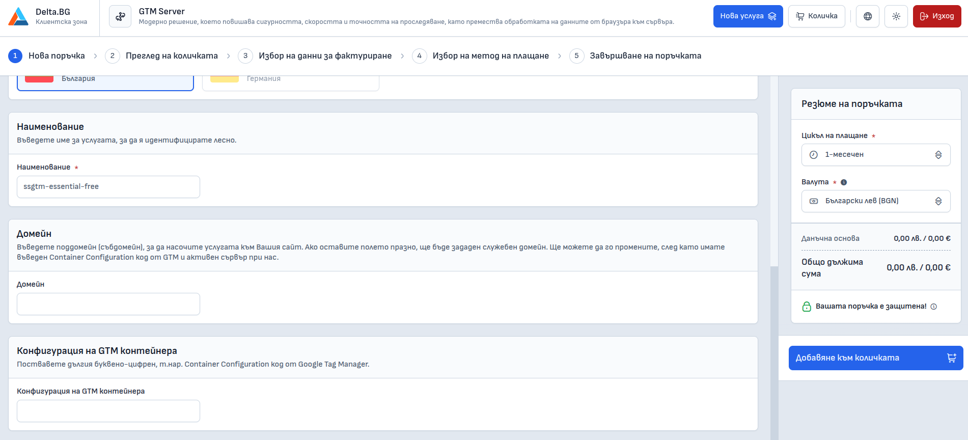 In this article, we will walk through step by step how to order and activate the GTM Server Hosting service from Delta.BG.