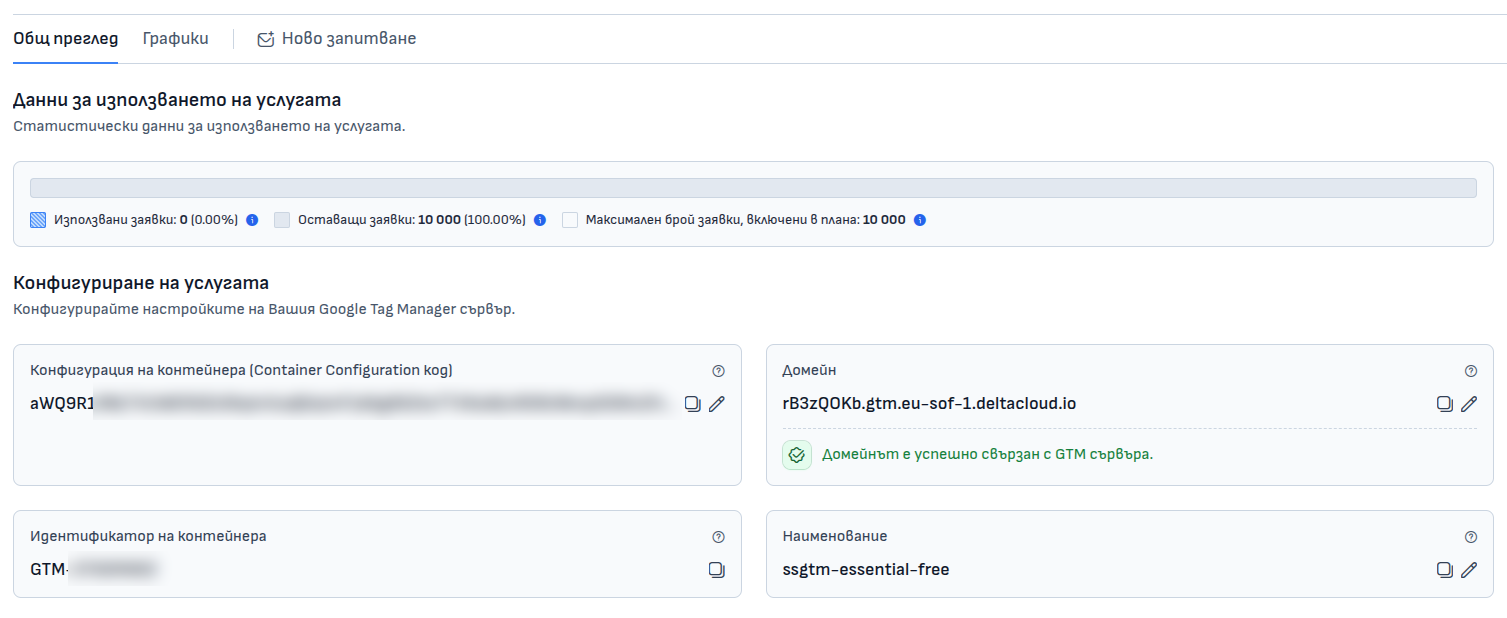 ssgtm-essential-free - Domain (optional) — you can leave it blank if you wish to use a service domain from Delta.BG